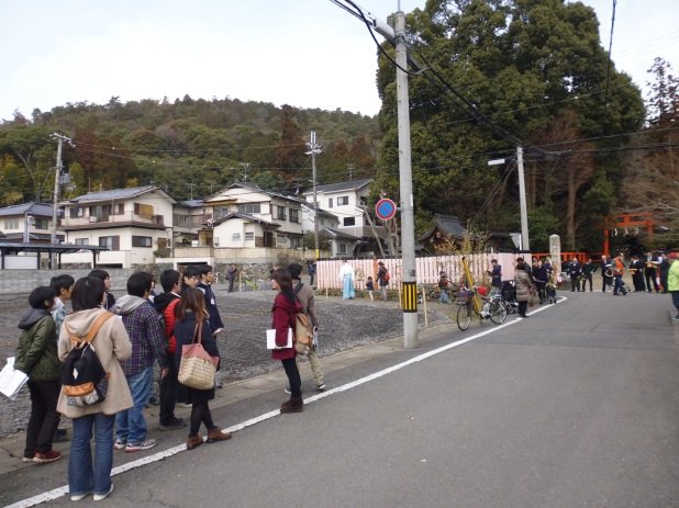 大田神社の説明のあと、「さんやれ祭り」の一行が先行して上賀茂神社へ向かったことを確認して